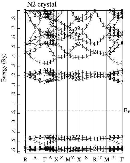 窒素の分子結晶のバンドの