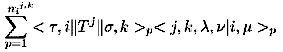 TSLADSの出力の見出しは7個の整数で,最初の数が既約表現の番号IR, 次はいつも1,3番目はJR,4番目は原子の種類番号IAである。5番目はJR で指定されたΛの次元と,IAで指定された種類の原子の単位胞に含まれる数の積 である。つまりこの5番目の数で与えられるだけの (8.11) の型のブロッホ関数が 対称化の対象になる。次の6番目が,得られた対称化関数の数を与えている。 最後の7番目は,6番目の数を既約表現IRの次元で割った数である。つまり, この数は何組みの対称化関数が得られたかを与えている。白く抜けている部分は GIF 画像です。Netscape の"画像を表示"のメニュー で拡大して見れます。
